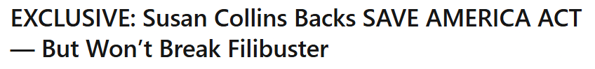 Fast forward to now. Republicans need the SAVE Act. It’s a national voter suppression law, and the only thing that can stop them from being annihilated in the midterms and 2028. I’m pretty sure they called it the SAVE Act because they designed it to save them from Trump.