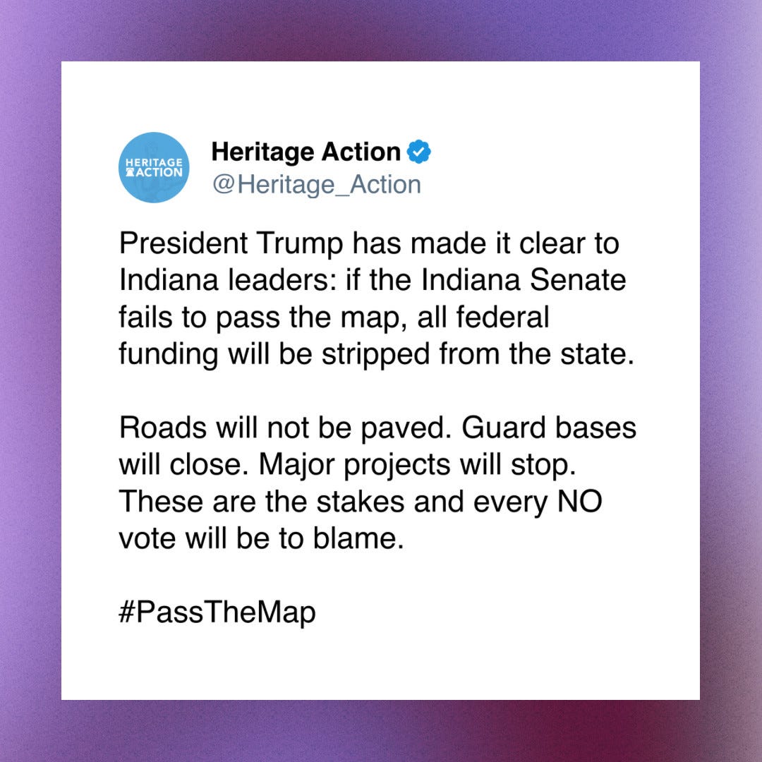 Most Republicans buckle under that kind of pressure. See Joni Ernst’s craven decision to vote for drunken rapist Pete Hegseth. But for some reason, Indiana Republicans said, “Nah.”