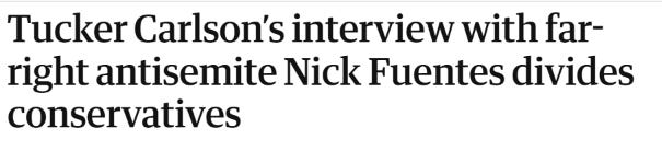 The religious right needs Jews to fulfill their biblical prophecy in the Middle East to bring about the return of Jesus and the Rapture and blablabla. Nazis do not care about any of that and want all Jews everywhere dead. Accordingly, Nick Fuentes and his followers have zero desire to continue supporting Israel. That’s a dealbreaker for the Evangelicals. They all hate Jews, but one side wants to use them and the other wants them all dead right now.